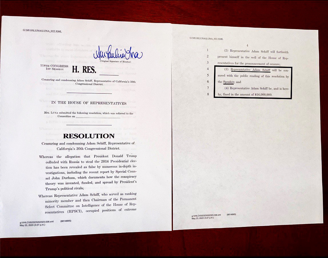 This week, I filed a privileged resolution, H. Res. 437, to censure, condemn, and fine Rep. Adam Schiff $16 million (half the cost of the Russia investigation) for his egregious abuse of the trust of the American people. I, along with my GOP colleagues, look forward to an imminent vote to hold this feckless man accountable.