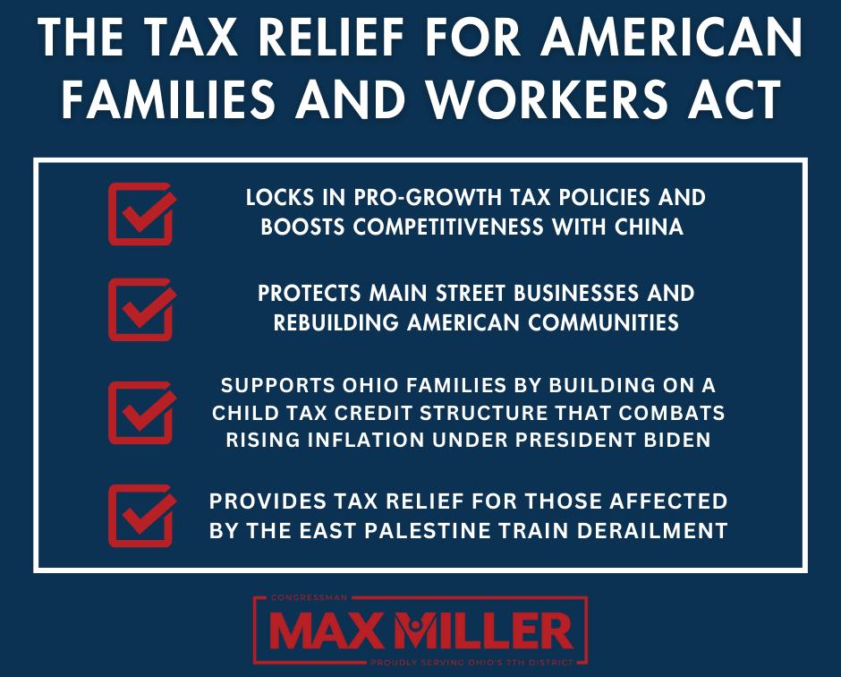 We passed the Tax Relief for American Families & Workers Act. That’s a long title, but it boils down to some great things for Ohioans and America.